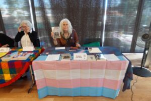 The message of her writing: Trans people exist. Richelle writes incisive and musical epistles about “me becoming who I really am over the objections of others.” Some private letters from the collection that she shared last night: “Letter to My Body, “Letter to Ex-Wife #3,” and “My Sex LIfe in Beds.” Some public-life poems she shared: “Letter to the Closeted,” “Letter to My Dead Name,” and “Inspite of the Fact, You Injected the Trans Flowers I Gave you with Poison, They are Doing Well.” It was a truly beautiful end engrossing reading complete with jazz and a rapt audience.